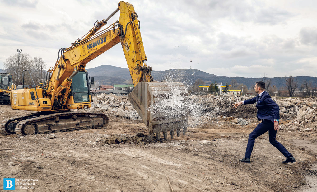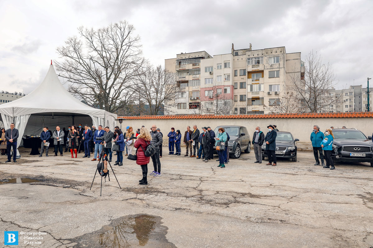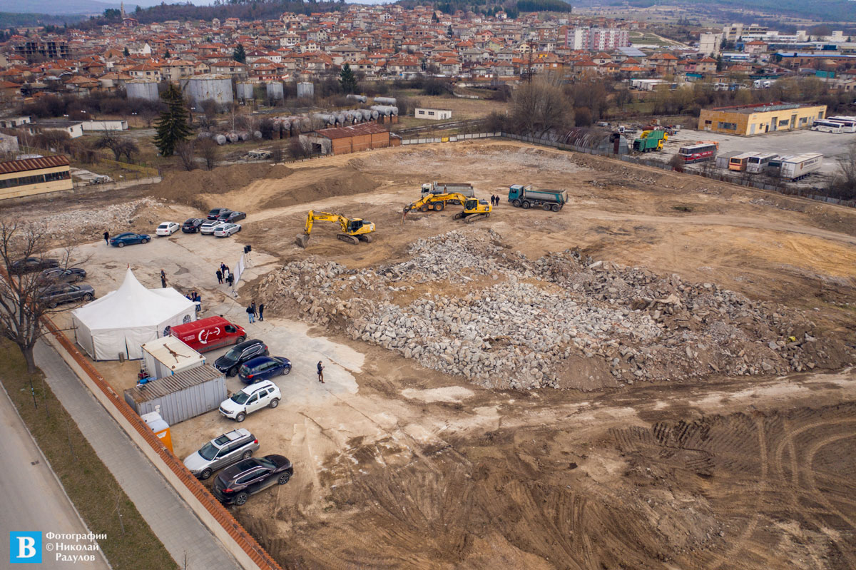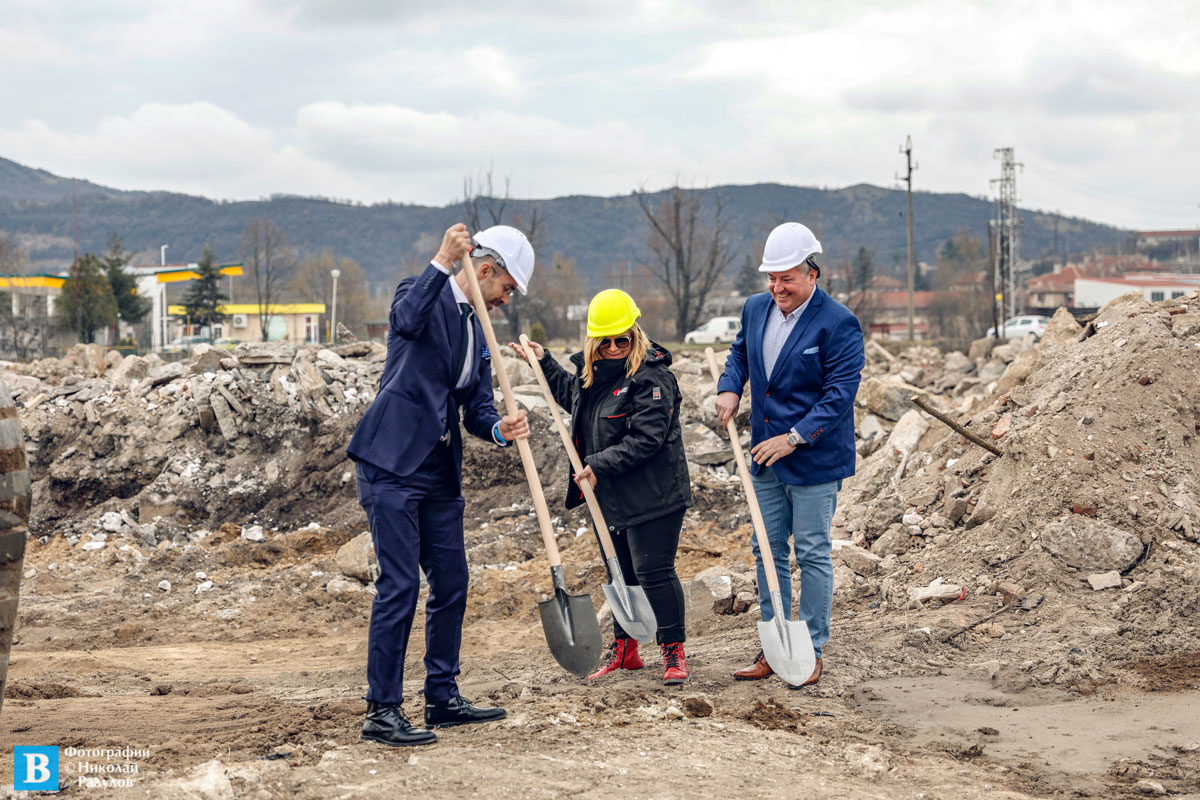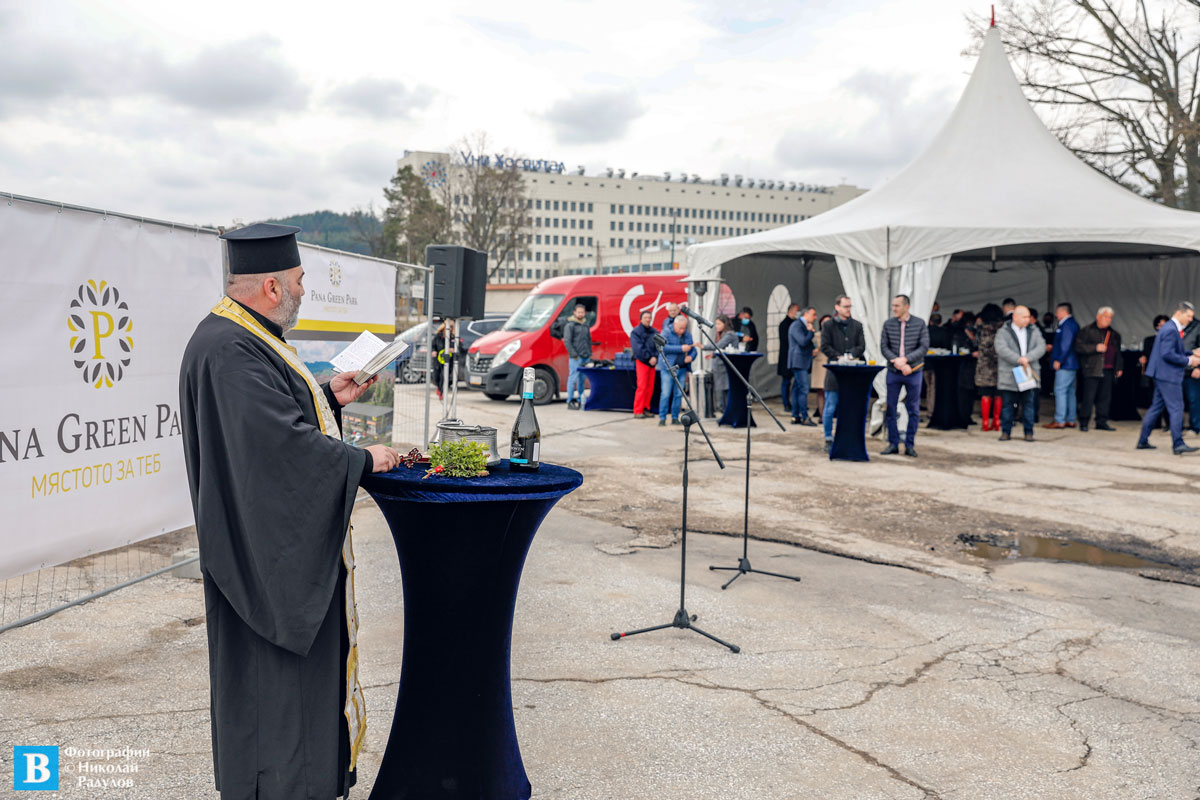 Н. Пенев привлече вниманието на участниците в церемонията към каменна плоча, подарена от игумена на Зографския манастир с пожелание за успех, здраве и благоденствие. Плочата ще бъде вградена в строежа. Тържествен водосвет и първа копка с багер, а и в обикновена лопата изпълниха представители на инвеститора и изпълнителя на обекта, след което отец Антон извърши водосвет за здраве.