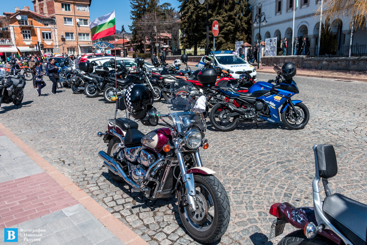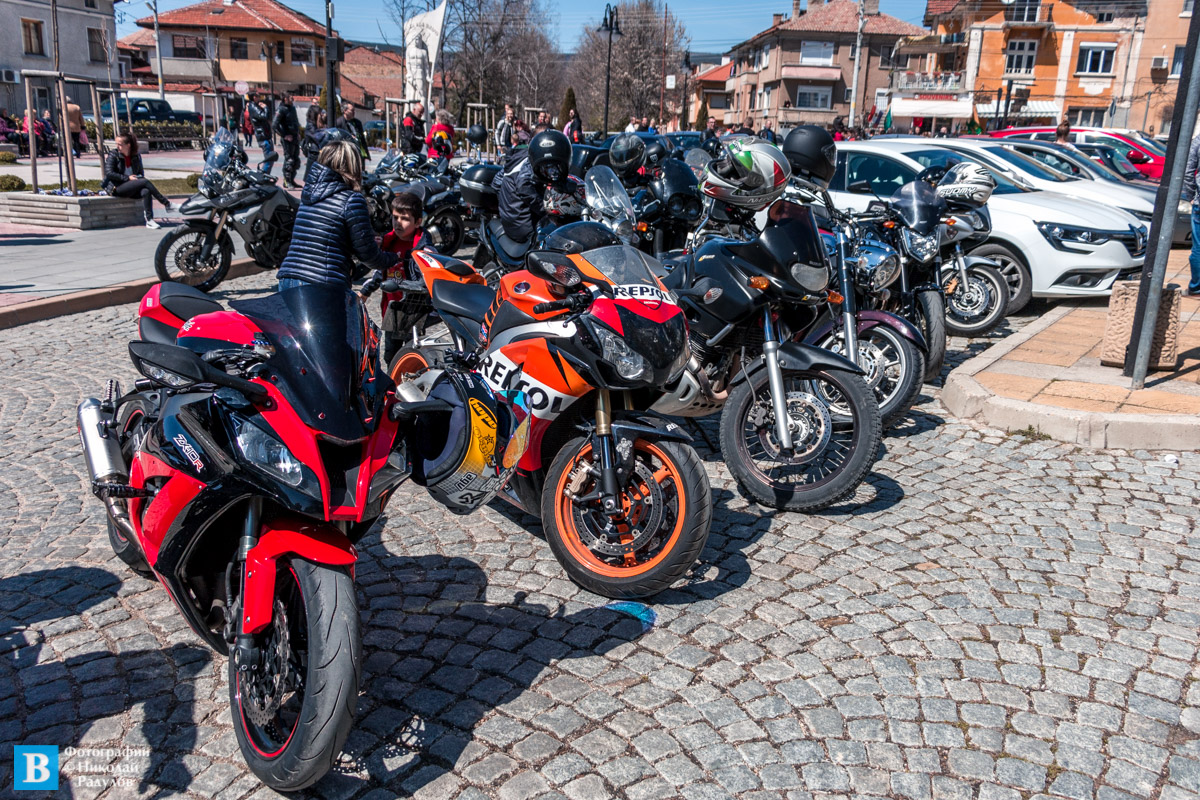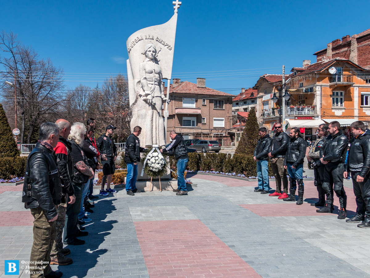 Шествието спря на площад Райна Княгиня, където мотористите поднесоха цветя пред паметника на знаменоската на Априлско въстание.