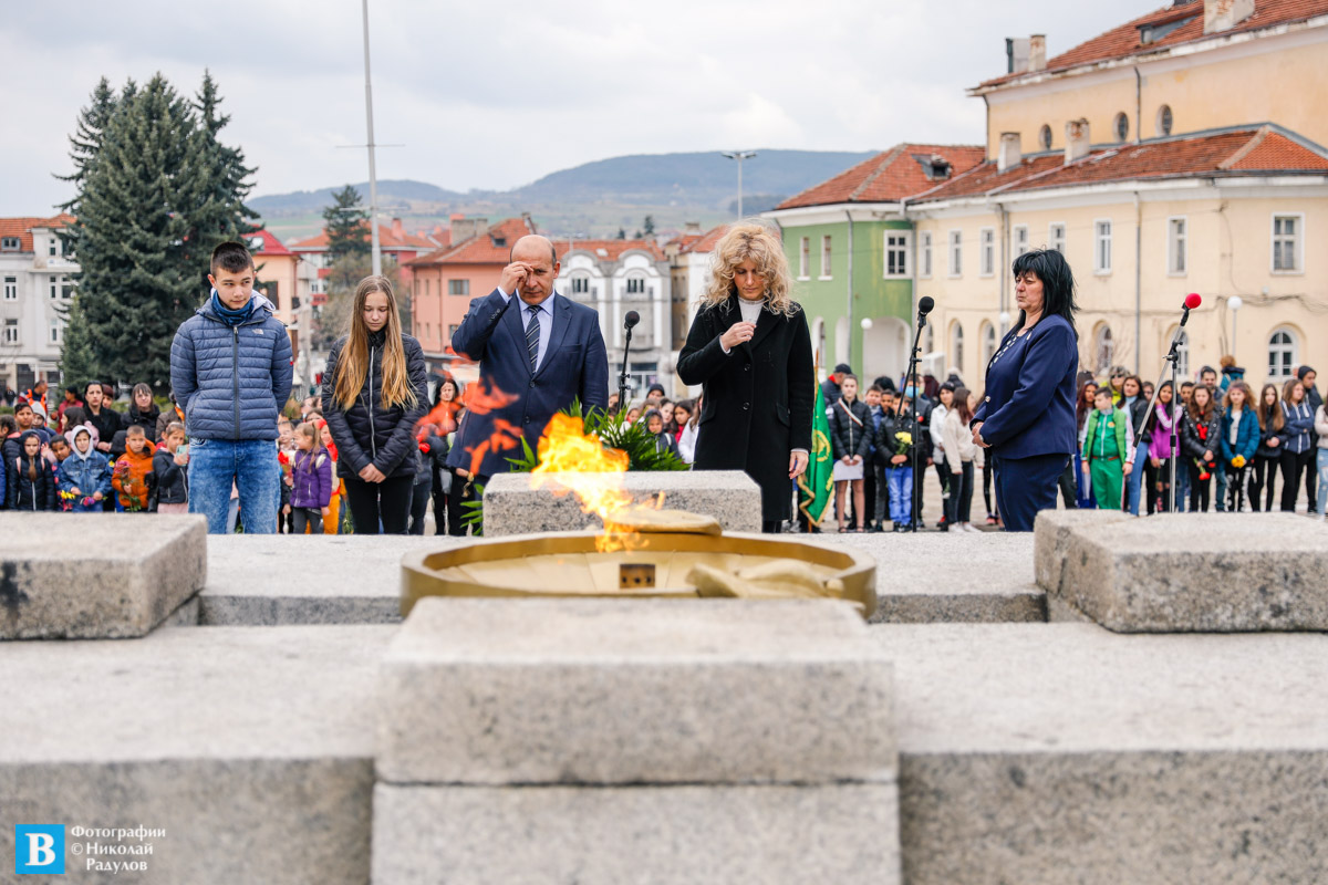 Тържеството завърши с песента „Моята България“ и поднасяне на венци и цветя пред вечния огън.