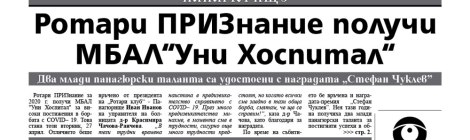 Ротари ПРИЗнание за 2020 г. получи МБАЛ „Уни Хоспитал“ за високи постижения в борбата с COVID-19. Това стана този вторник, 27 април. Отличието беше връчено от президента на „Ротари клуб“ […]