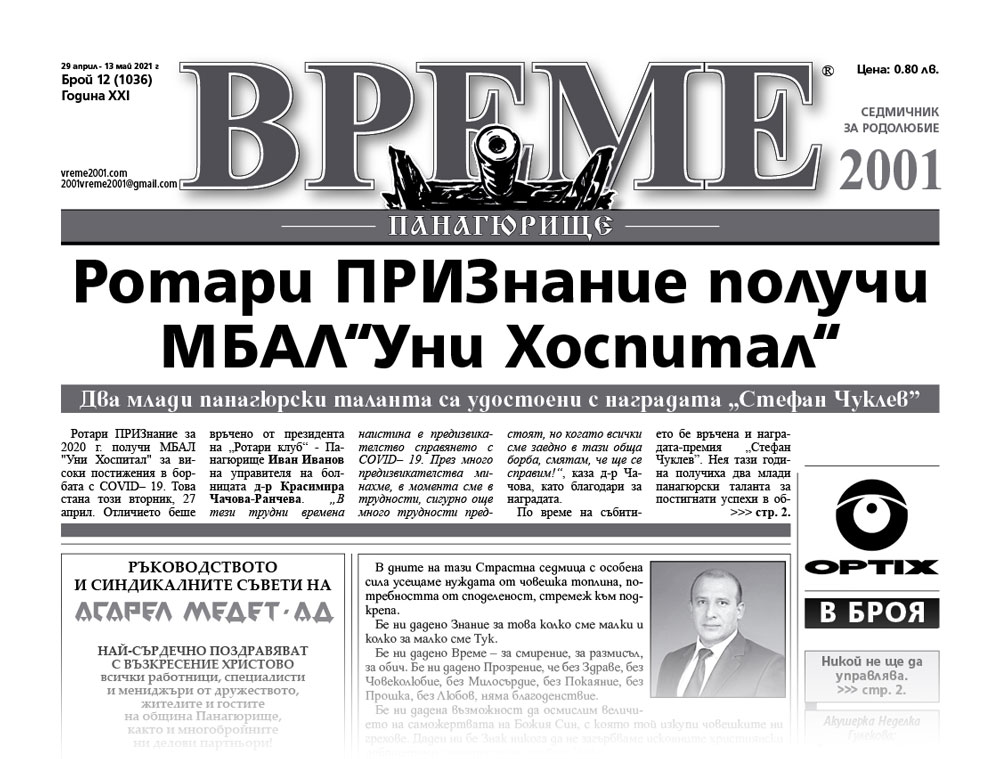 - Ротари ПРИЗнание получи МБАЛ “Уни Хоспитал. Два млади панагюрски таланта са удостоени с наградата „Стефан Чуклев”;