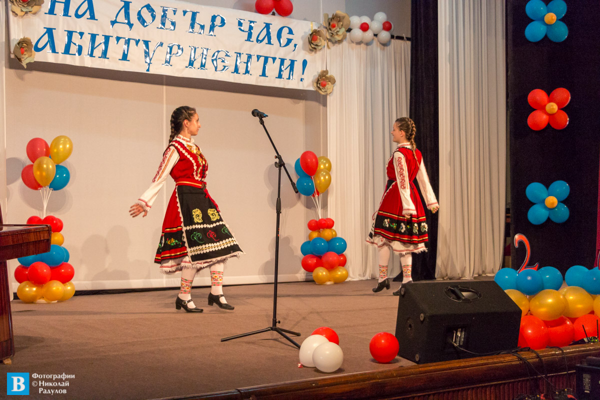 В началото на празничната вечер, с два народни танца поздрав към завършващите отправиха Мария и Гергана Илкови, ученички от ПГ, но и част от ФНТ “Средногорска жарава“. Талантливата Виктория Манева изпълни емблематичните песни „Учителко, целувам ти ръка“ и „Един неразделен клас“.