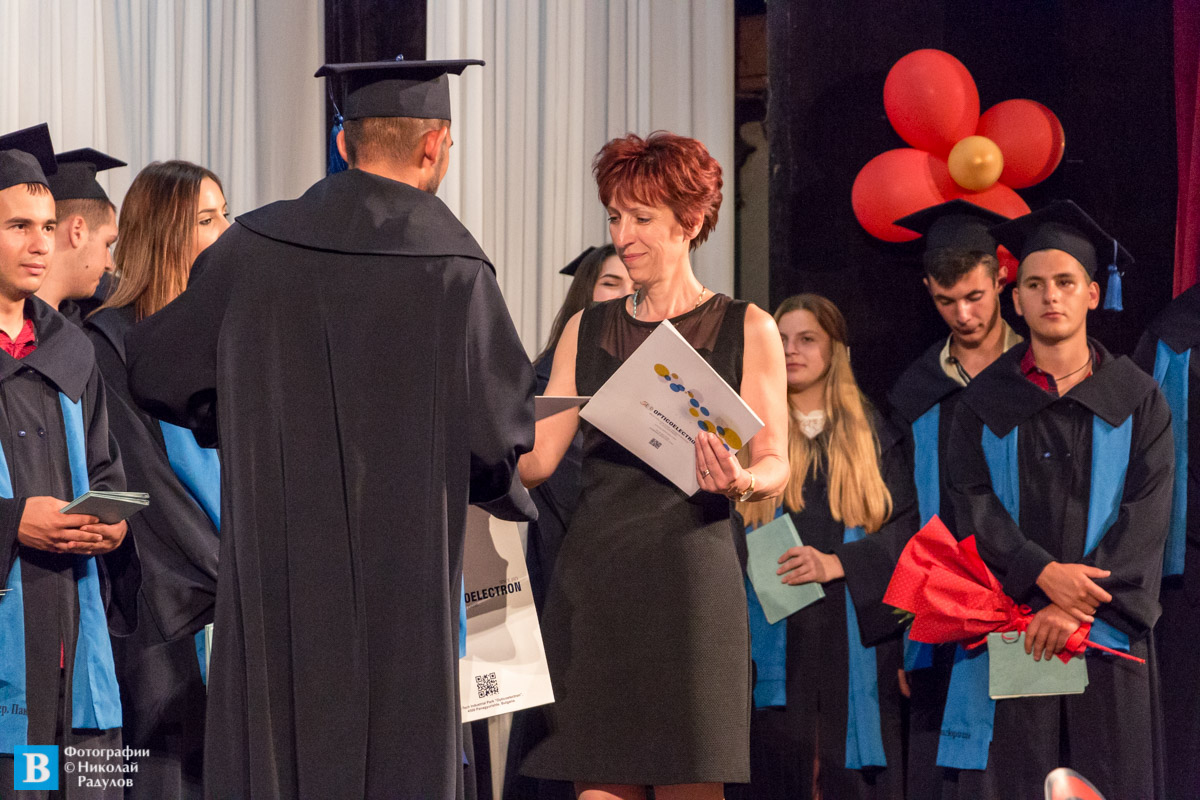 Вчера, 23 юни, на тържествена церемония в НЧ “Виделина-1865“ зрелостниците от Випуск 2021 на Професионалната гимназия по индустриални технологии, мениджмънт и туризъм (ПГИТМТ) получиха своите дипломи за завършено средно образование и свидетелства за професионална квалификация. Гости на тържеството бяха Соня Добрева, главен експерт в отдел Образование, култура, младежки дейности и спорт в Община Панагюрище, Бисерка Янева – директор „Човешки ресурси” в „Асарел-Медет”АД, инж. Соня Славкова – мениджър Логистика в „Оптикоелектрон Груп“ АД, Даниел Даскалов – директор „Ресурси“ в „Оптикс“ АД, Нистор Хаинов – представител на „Ротари клуб” – Панагюрище, родители и близки на зрелостниците.