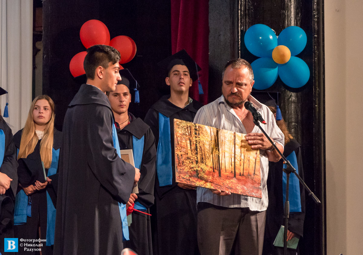 От името на „Ротари клуб”- Панагюрище Нистор Хаинов връчи ежегодната награда за постигнат най-висок успех на Радостин Петров , заедно със завета на Св. Иван Рилски и творческа фотография на Ани Лазарова.