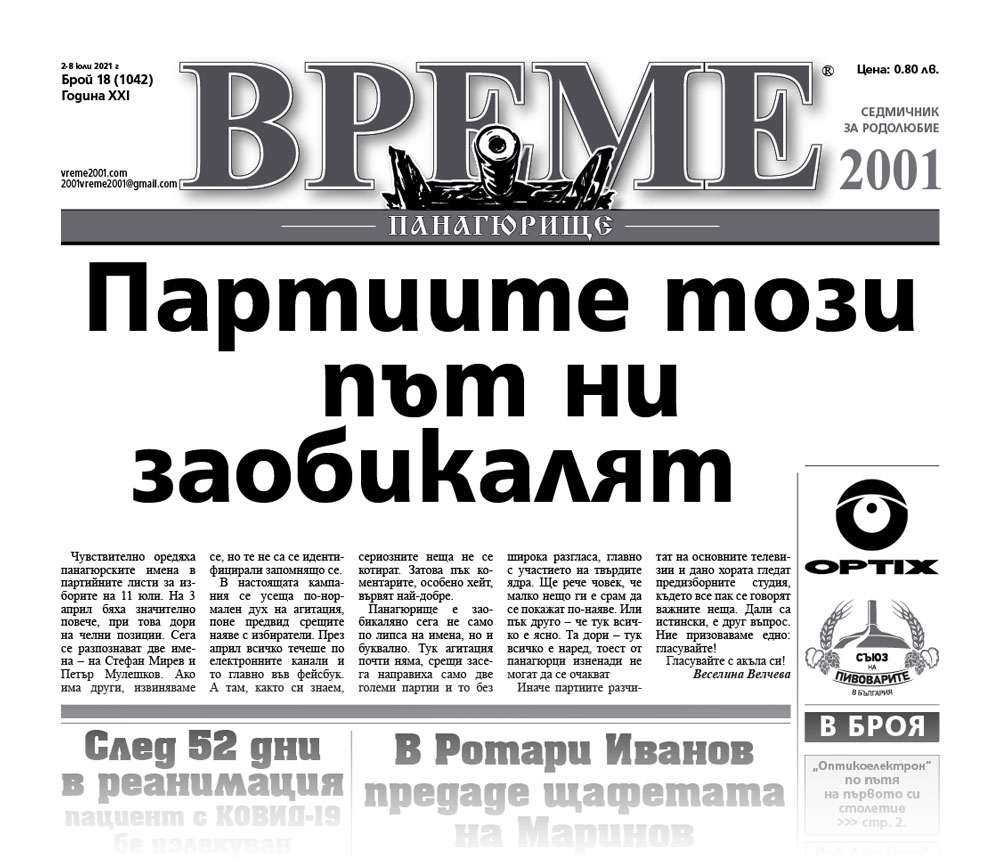 Вижте някои от актуалните теми, намерили място в брой 18 на вестник „Време 2001“: