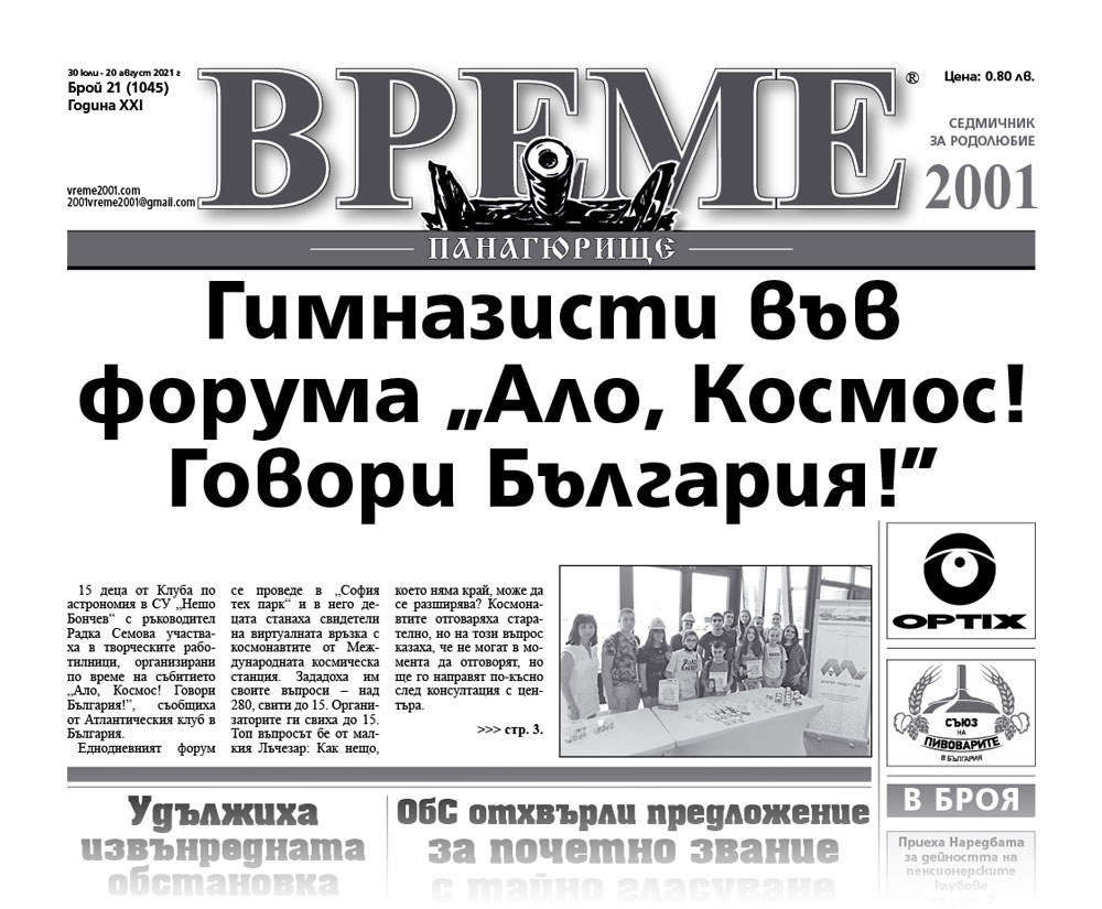 Вижте някои от актуалните теми, намерили място в брой 21 на вестник „Време 2001“: