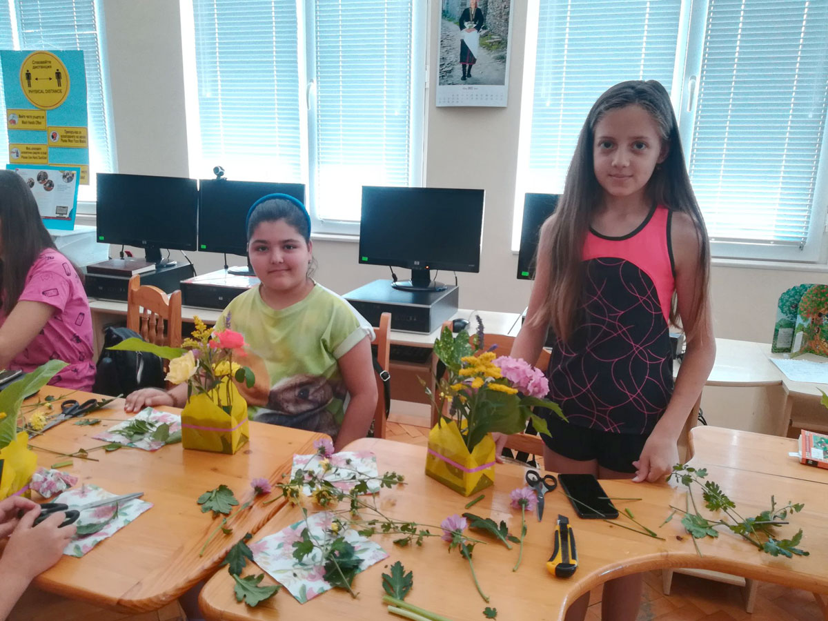 В последния ден от творческите занимания децата се научиха как да подреждат различни видове цветя, като всеки участник се постара да направи красива цветна аранжировка за вкъщи.