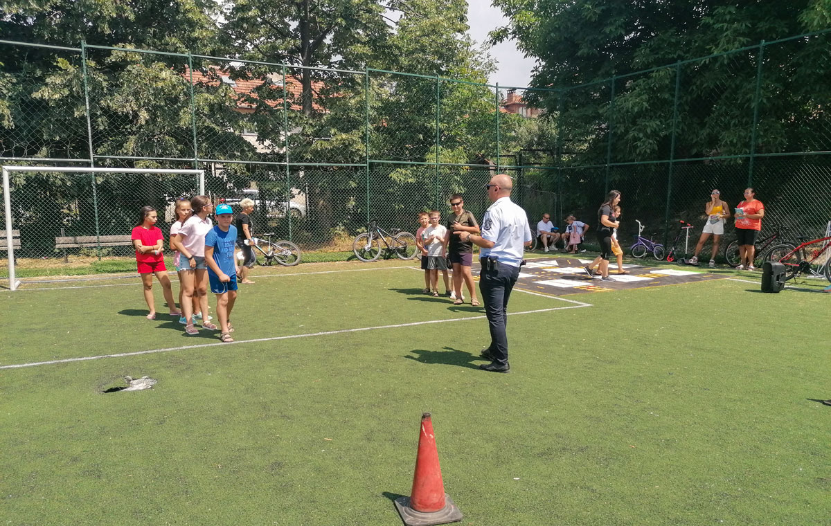 Децата преминаха безпроблемно пред викторината по пътна безопасност демонстрирайки добри познания. Последваха няколко игри под надслов „Подреди пъзела с пътни знаци” и „Познавате ли униформата на пътния полицай”. В края малчуганите с участваха в надпревара по умело управление на велосипеди и тротинетки при спазване на пътни знаци и маркировка. Всяко дете получи, като подарък книжки със съвети за безопасно движение по пътищата и значка на участък в „Безопасно лято”- Стрелча.