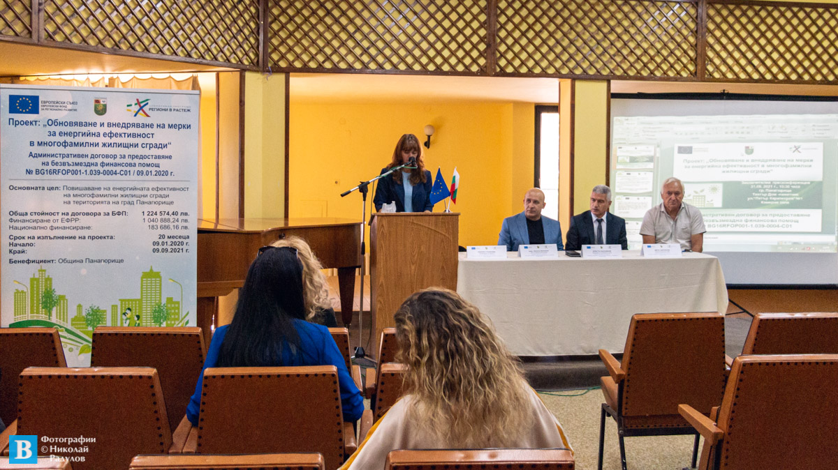 С официални церемонии „Откриване на обекта” и пресконференция Община Панагюрище финализира проект: „Обновяване и внедряване на мерки за енергийна ефективност в многофамилни жилищни сгради“, част от Инвестиционната програма за изпълнение на Интегрирания план за градско възстановяване и развитие на община Панагюрище 2014-2020 година.