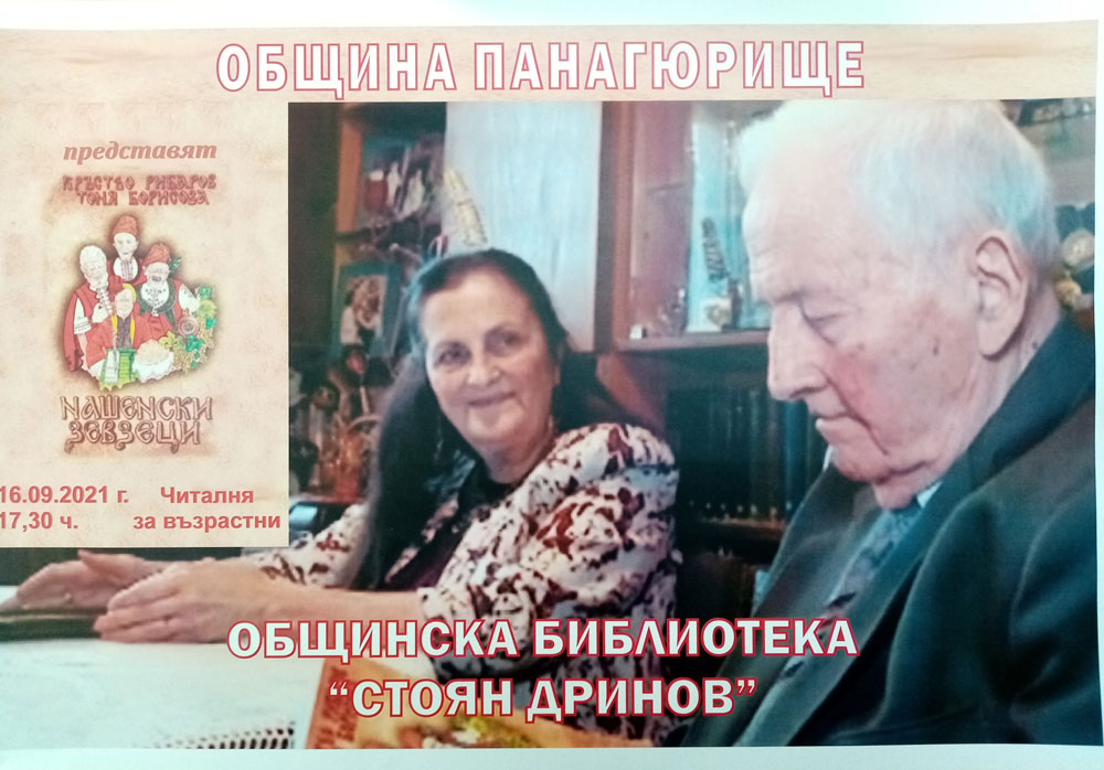 Община Панагюрище и Общинска библиотека „Стоян Дринов“, организират литературна вечер с актрисата и писателка – Тоня Борисова, за представяне книгата – „Нашенски зевзеци“.
