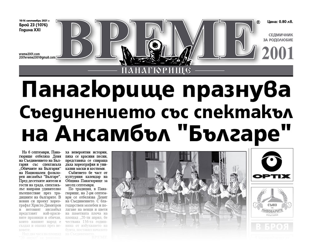Вижте някои от актуалните теми, намерили място в брой 23 на вестник „Време 2001“: