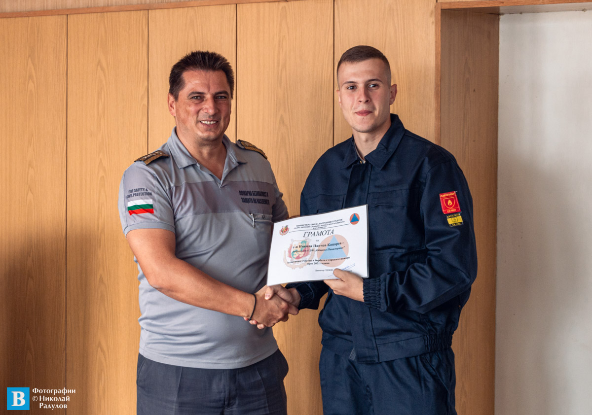 Председателят на Националната асоциация на доброволците в Република България д-р Ясен Цветков награди с плакет „За принос и заслуги при овладяването на горските пожари през 2021 г.“ доброволното формирование на община Панагюрище. Това се случи днес, 19 септември, в сградата на Районна служба „Пожарна безопасност и защита на населението“ в Панагюрище.