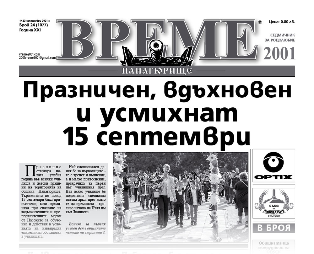 Вижте някои от актуалните теми, намерили място в брой 24 на вестник „Време 2001“: