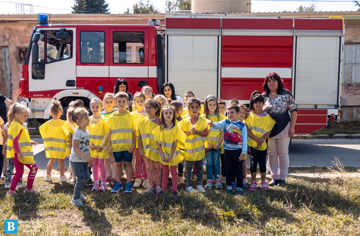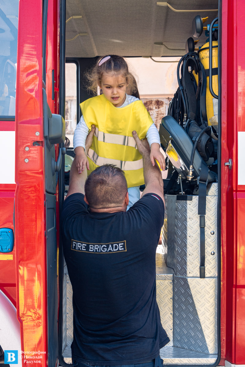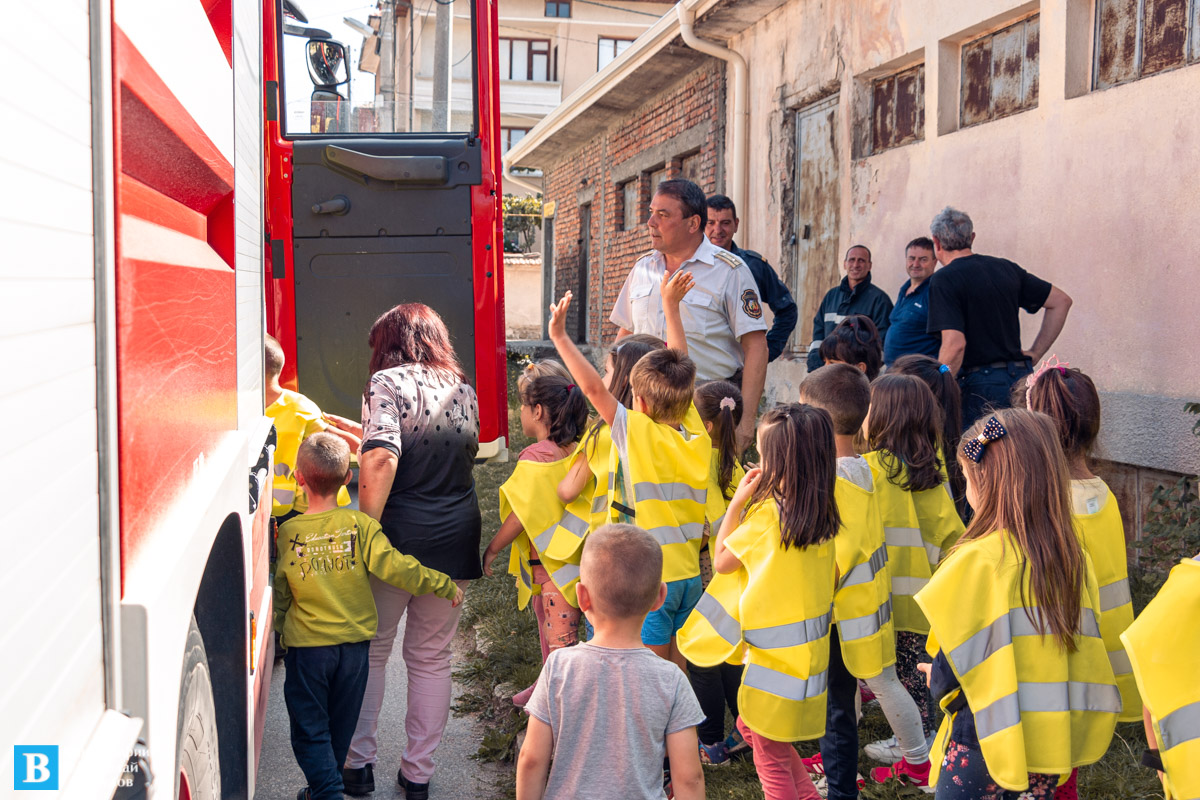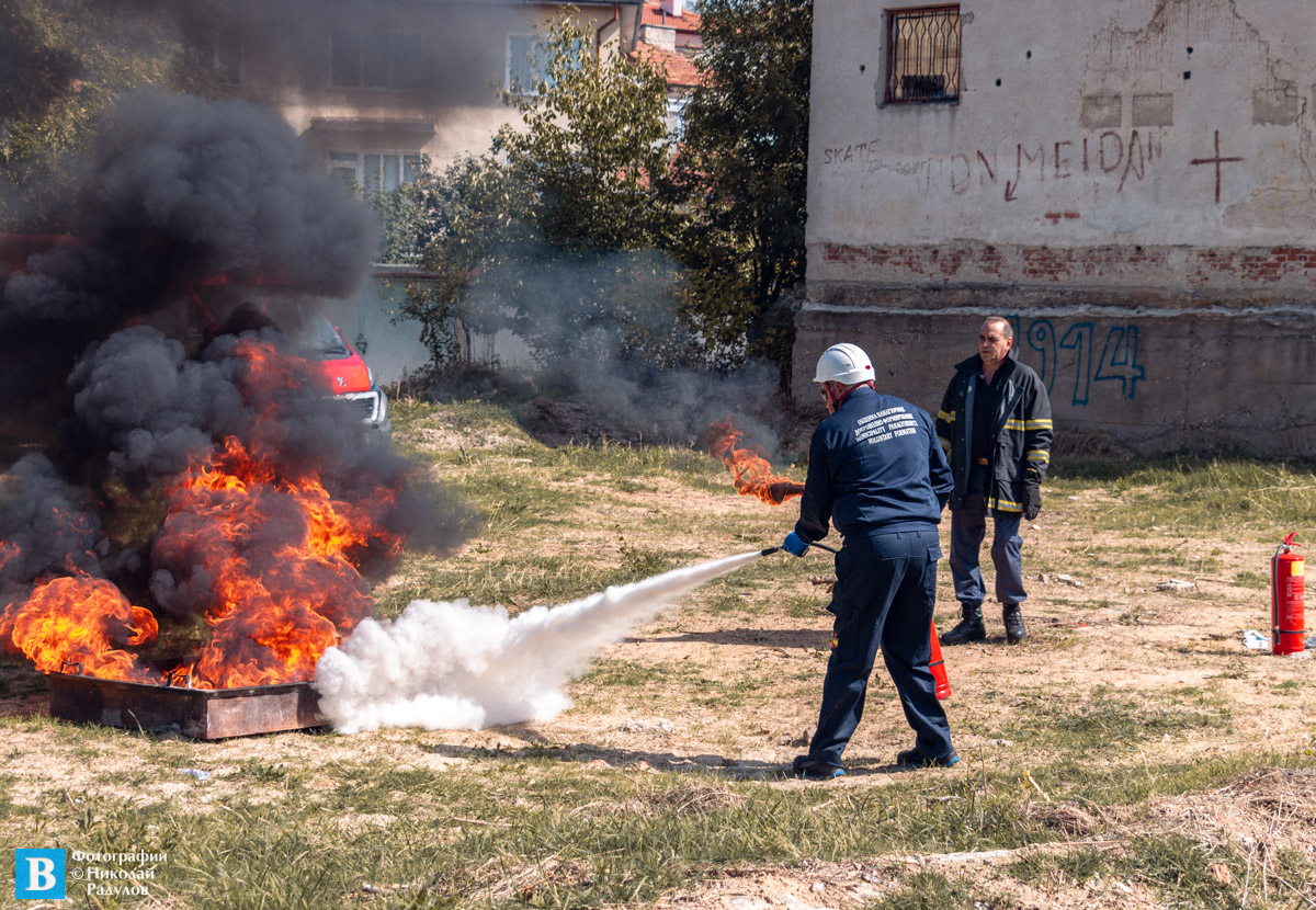 След това в района на бившето Лятно кино, огнеборците демонстрираха гасене на леснозапалими течности с прахов пожарогасител. Там като зрители се включиха децата от близката детска градина.