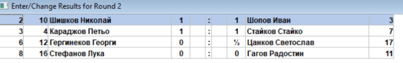 Предстои изиграването на още четири срещи във втори кръг на първенството. Утре, на черно-бялата дъска, се очаква да се развие сблъсъкът на между Гергинеков – Цанков.