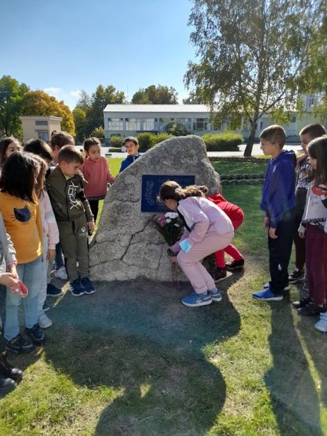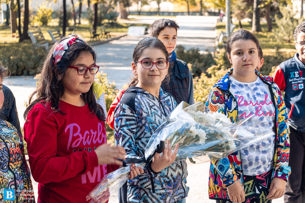 Дриновци поднесоха цветя и пред плочата на своя патрон в училищния двор.