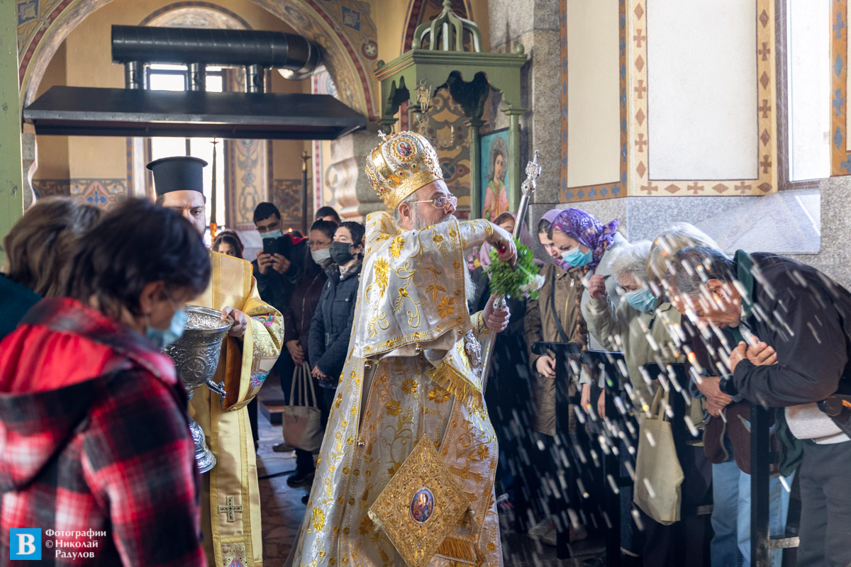 Самата архиерейска света Литургия, започна веднага щом Негово Високопреосвещенство Пловдивският митрополит Николай влезе в храма и протече с голяма тържественост. Тя бе водена от самия него в съслужение със свещеници от Пловдивска епархия. Отслужената литургия отбеляза обновяването на храма и 120 години от построяването му.