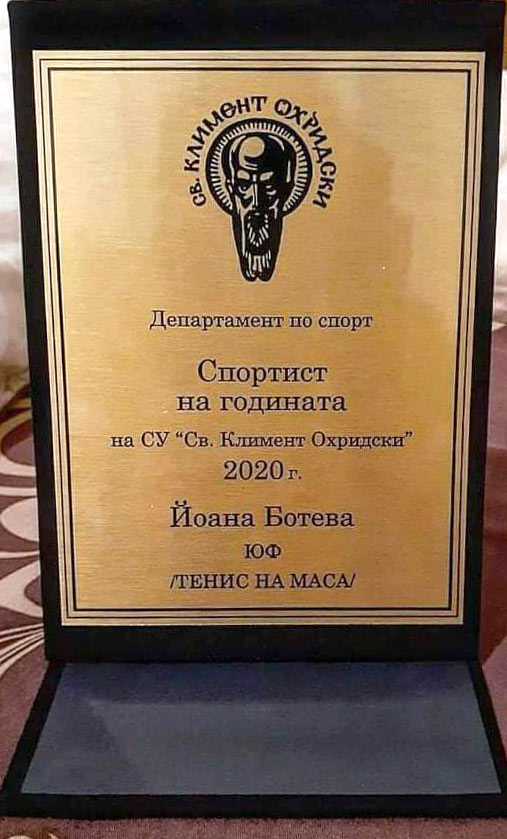 В две поредни години – 2020 и 2021, панагюрки заслужиха признанието „Спортист на годината“ на СУ „Св. Климент Охридски“ – Йоана и Десислава Ботеви. Те са студентки в Софийския университет – Йоана завършва специалност „Право“, а Десислава е в 4 курс, специалност „Молекулярна биология“. Това, че изучават изключително сериозни науки не им пречи да бъдат спортисти и състезатели по тенис на маса. Те са част от отбора по тенис на маса, който представя СУ „Св. Климент Охридски“ и завоюват за университета много престижни отличия. Миналата 2020 г. Йоана беше избрана за Спортист на годината, а тази година това признание получи и Десислава за отминаващата 2021 г. Отличията бяха връчени на церемония в Студентски град.