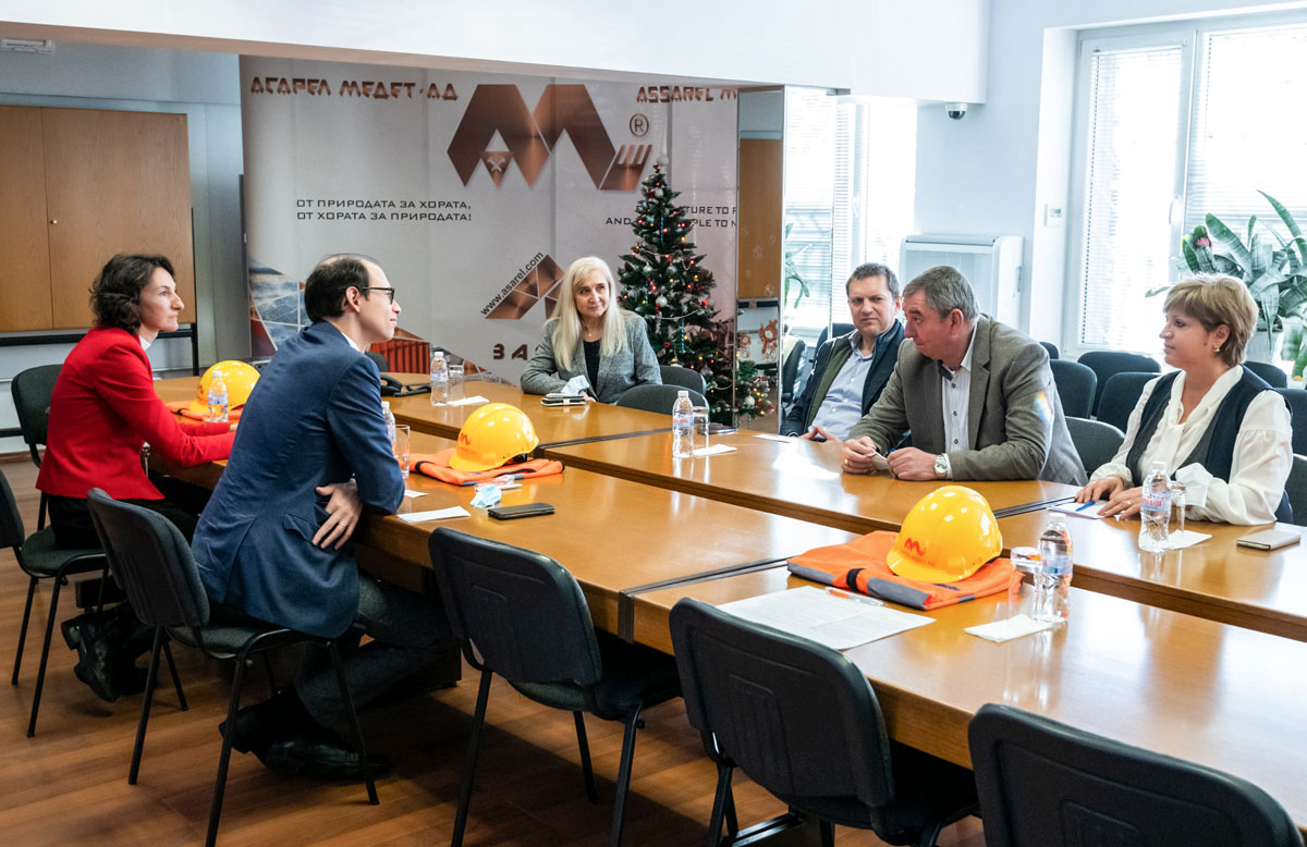 Изпълнителният директор инж. Делчо Николов представи проектите за дългосрочно устойчиво развитие и инвестициите в модерна техника, нови технологии, опазване на околната среда и безопасност на труда за над 1,4 млрд. лева от 1999 до сега. По време на работната среща бяха обсъдени възможностите за партньорство на „Асарел-Медет“АД с фирми от Австрия по различни бъдещи проекти. След това гостите посетиха диспечерната на рудник „Асарел“, където изпълнителният директор инж. Делчо Николов ги запозна с производствения процес в компанията. Филип Купфер и Петя Галинова останаха особено впечатлени от мащабите на оборудването, което работи в рудник „Асарел“ и се снимаха за спомен пред някои от най-внушителните експонати във фирмената експозиция за историята и развитието на „Асарел-Медет“АД.