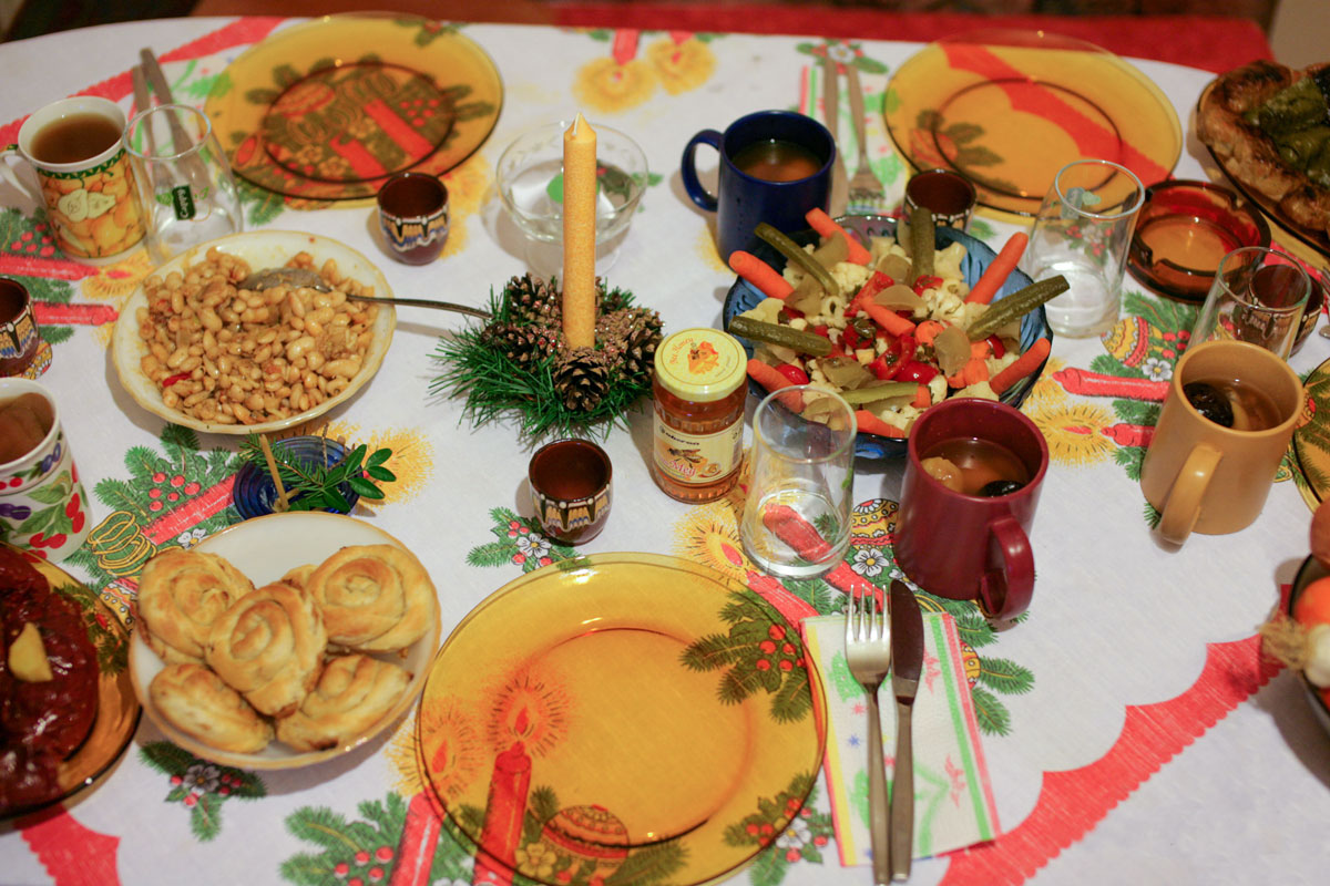Трапезата е обредна, в чест на Рождество Христово, пости се целия ден. Това е краят на Коледните пости. Те започват по-отрано, 14 ноември, вече сме закъснели за старта, но можем да се потрудим за финала. Краят е на 24 декември, Бъдни вечер.
