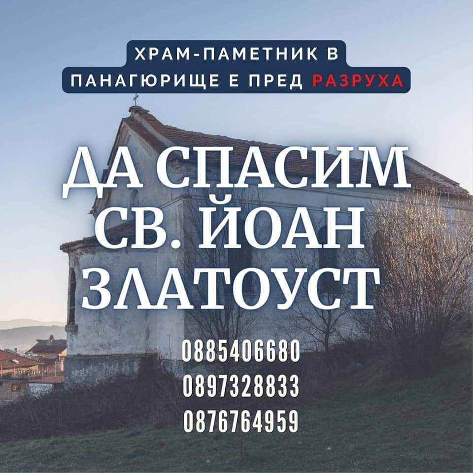 Вече е в ход благотворителната инициатива за обновлението на храм-паметник „Св. Йоан Златоуст“ в Панагюрище. Тя бе подета преди дни от част от момчетата, които скочиха и тази година за Богоявленския кръст.