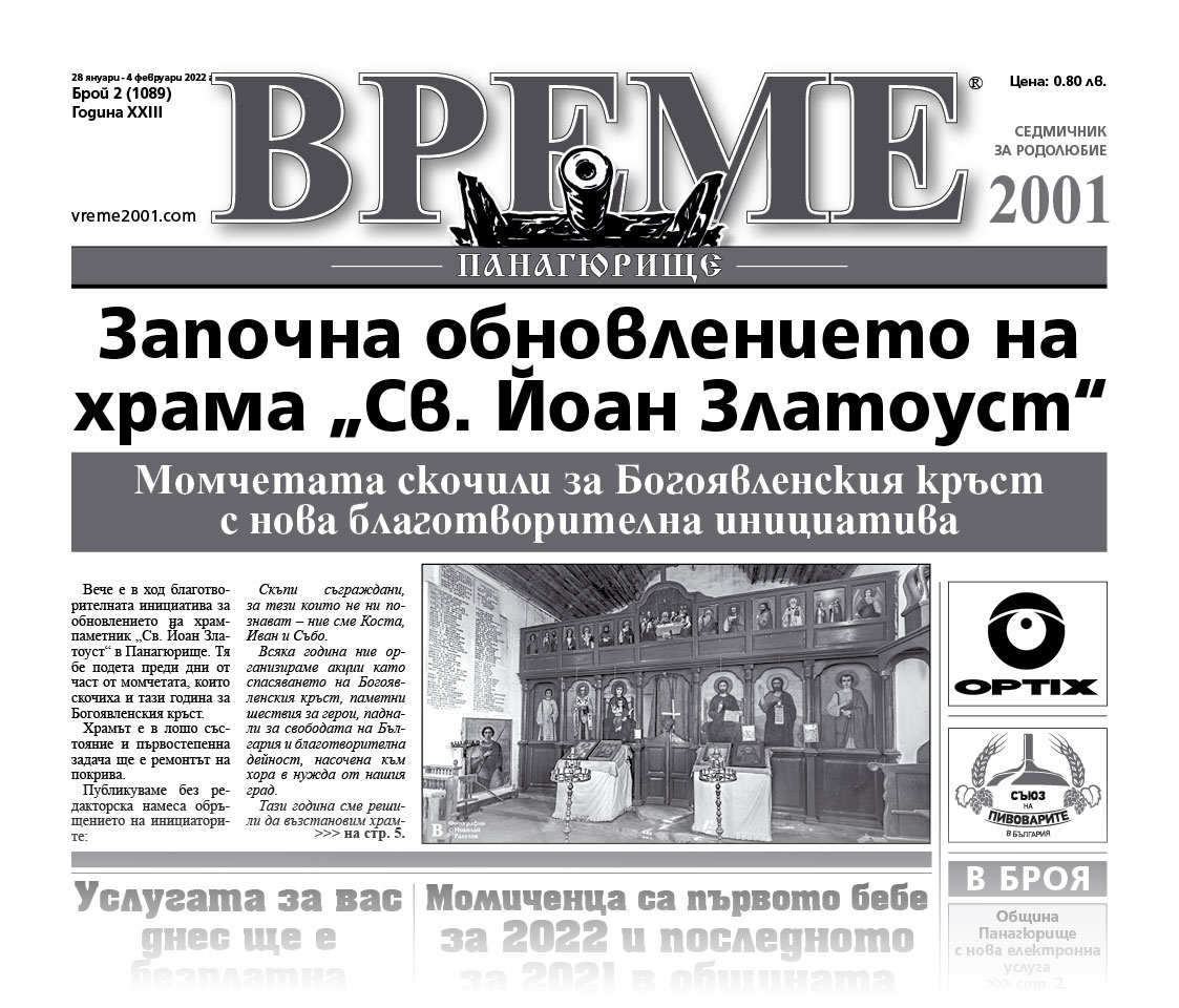 Излезе от печат втори брой за 2022 г. на панагюрския вестник „Време“. В него ще откриете актуалните новини от общината ни, а и още интересни теми. Ето някои от тях: