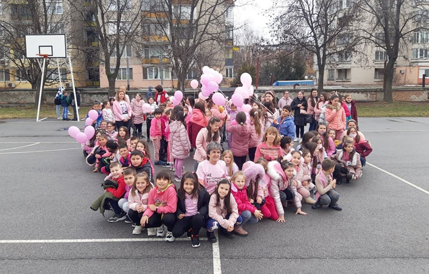 Дриновци показаха своята позиция на неприемане на тормоза в училище. Всеки клас се включи с инициативи. Бяха направени тематични кътове. През голямото междучасие ученици и учители направиха розово сърце, а в небето полетяха розови балони.