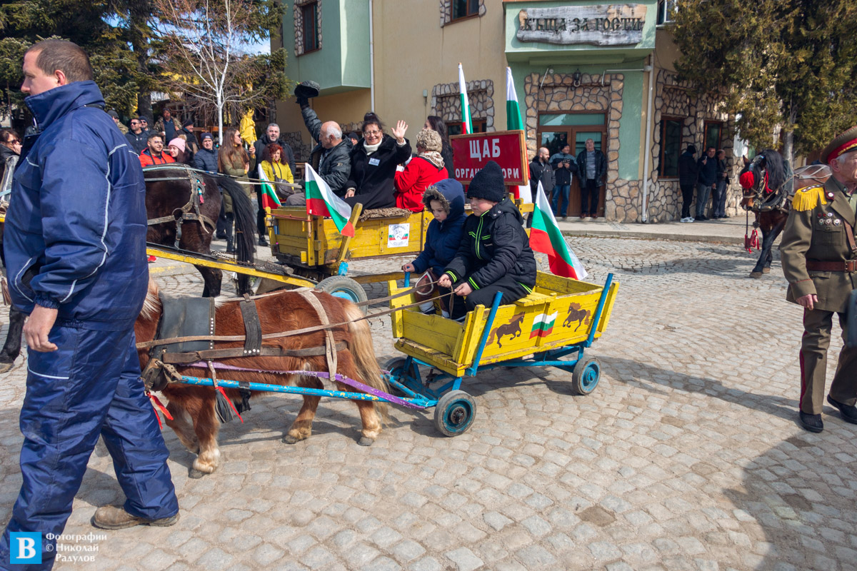 След пристигането на колоритната менажерия на площада в Баня, където ги очакваше публиката, тържествено беше издигнат първият символ на българската държава – конската опашка. Секретарят на НЧ „Пробуда-1872“ Радка Мутева поздрави всички присъстващи на празника и под звуците на оркестър се изви хоро. На витрините на читалището беше подредена фотоизложба от кадри от различни години на провеждане на празника.