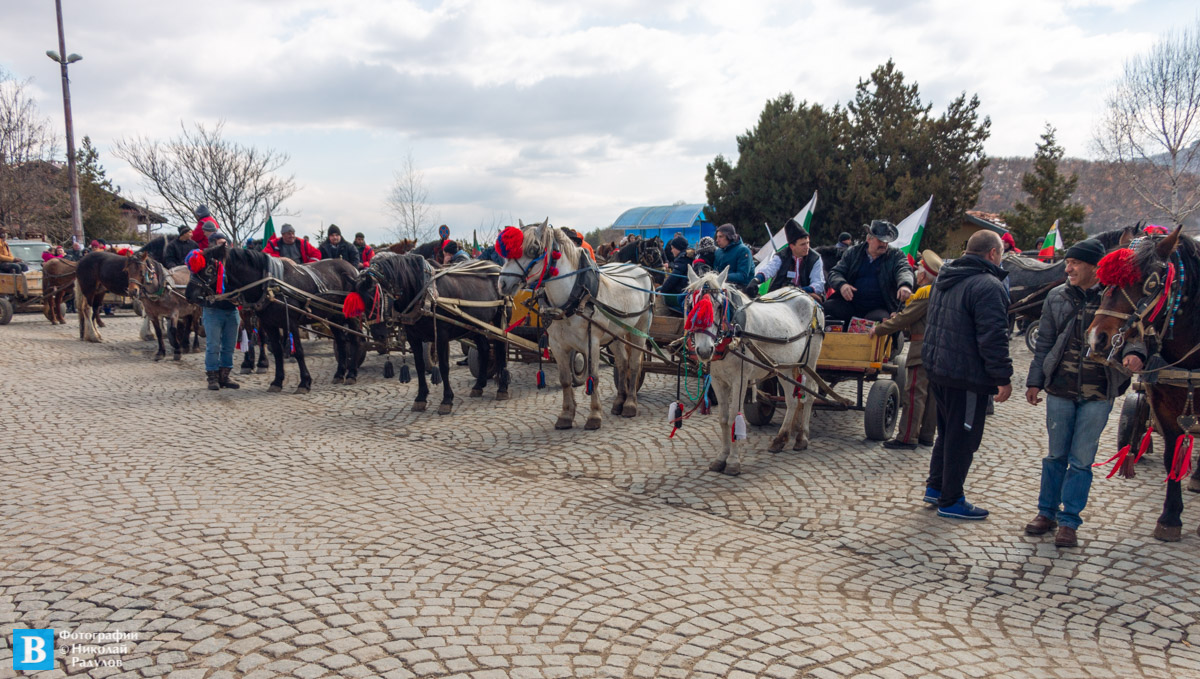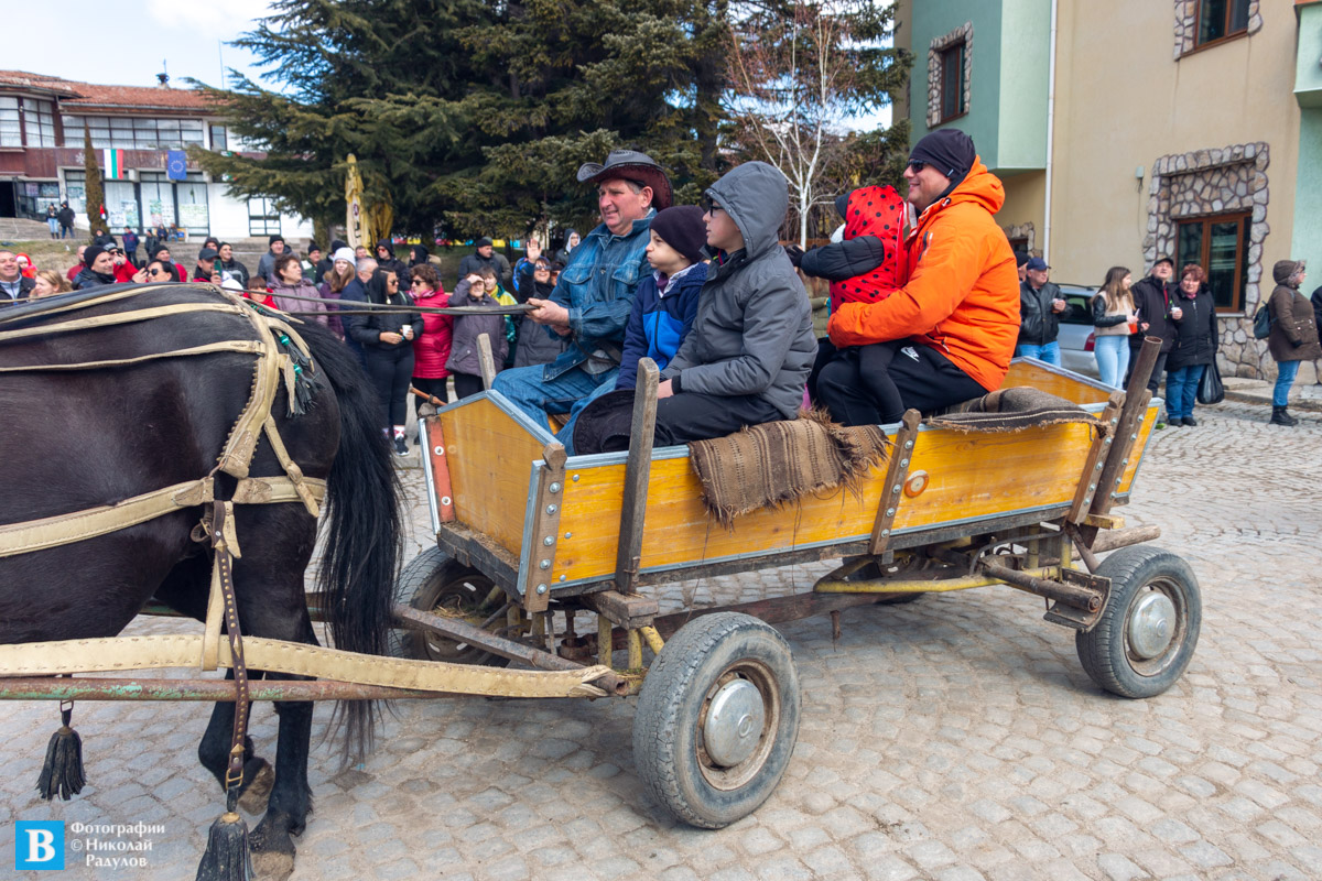 Празничният ден започна малко след 11,00 ч. с традиционното карнавално шествие. В него почетните места бяха за конете и магаретата, които гордо водени от своите стопани преминаха по главната улица в селото. Колоритния парад тръгна от входната арка на Баня като премина по главната улица на селото.