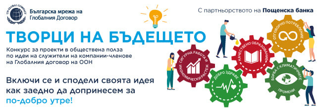 Българската мрежа на Глобалния договор на ООН стартира конкурс за колективни проекти в обществена полза, по идеи на служители на компаниите, които предлагат иновативен подход или допринасят за напредъка по теми като опазване на околната среда, образование, добро здраве и други общественозначими проблеми. Идеите, събрали най-много заявки за включване от компаниите, ще бъдат реализирани като колективни проекти на Българската мрежа. Конкурсът се провежда с подкрепата на Пощенска банка. Няма такса за участие за компании и служители.