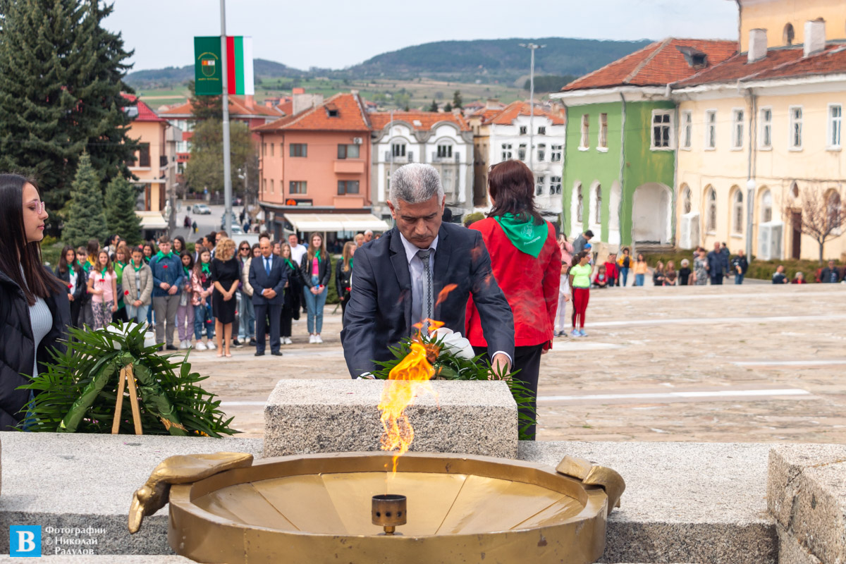 Председателят на Общински съвет Христо Калоянов, кметът на община Панагюрище Никола Белишки, заместник-кметът „Хуманитарни дейности” Галина Матанова, заедно с участници и гости на фестивала се включиха в тържествено шествие, водено от духов оркестър „Делчо Радивчев” и мажоретен състав „Елинор” към Център за подкрепа за личностно развитие – Панагюрище, до Вечния огън на Мемориален комплекс „Априлци“, където бяха поднесени венци и цветя в памет на героите от април 1876 година .