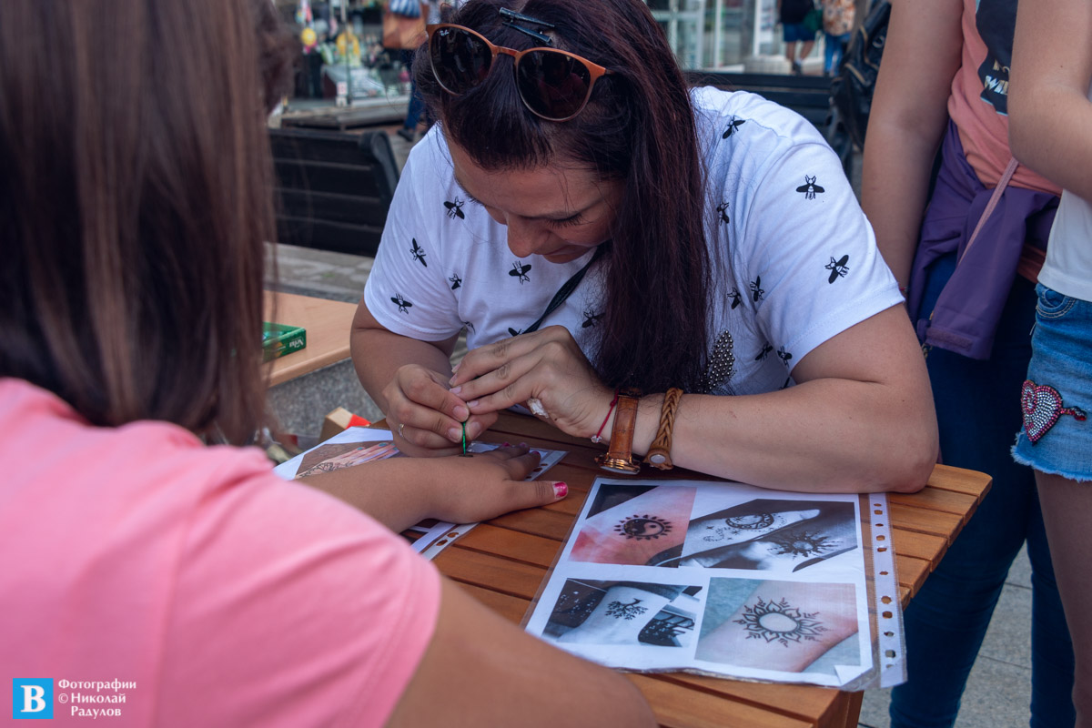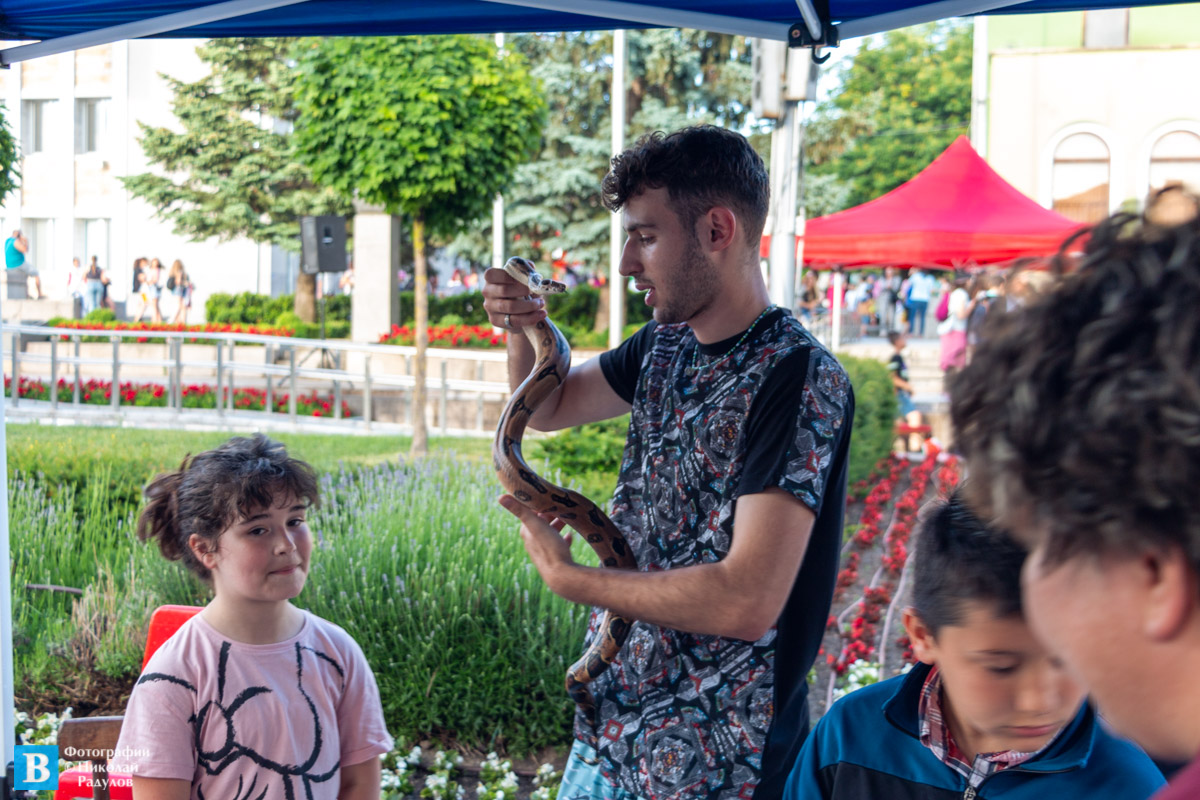Целият площад бе изпълнен с пъстри шатри, под всяка от които се извършваха различни забавни дейности – приготвяне на бисквитки, заедно със Smarty Kids – интерактивна, ментална аритметика; рисуване с къна с Петя Узунова; арт ателие на Нистор Хаинов с участието на екип от деца от Центъра за подкрепа за личностно развитие – Панагюрище; терариумите и животните-актьори на зоолога Стоян Лазаров и синове; инициативата, водена от децата от ЛЕО КЛУБ – Панагюрище за изработване на най-дългата рисунка; рисуване на керамични фигури под ръководството на Наталия Терзиева от град Троян и Мариан Барзеков от Панагюрище и рециклиране и производство на стъкло с инж. Мариела Николаева.