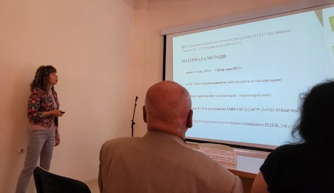В научното съобщение, изнесено от д-р Анелия Гоцева, бяха представени резултатите от извършеното целогеномно секвениране на позитивни PCR проби на пациенти с COVID-19 на МБАЛ „Уни Хоспитал“. От общо 240 секвенирани проби, взети в периода 01.07.2021 – 04.02.2022 г., при 103 (43%) е доказан Делта вариант (В.1.617.2) на вируса и при 137 (57%) – Омикрон (В.1.1.529). Данните показват, че всички хоспитализирани (6/103) и починали (n=2) пациенти с Делта вариант на SARS-CoV-2 са неимунизирани, възрастни и със съпътстващи заболявания. От заразените с Омикрон само един е хоспитализиран, 117 са неимунизирани, само 20 са ваксинирани и 25 са повторно инфектирани. Направени са следните изводи: