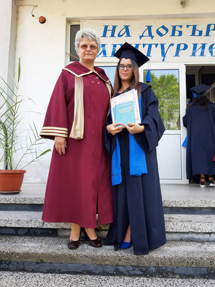 Позволете ми от името на моите съученици и, разбира се, от мое име да ви споделя колко съм развълнувана днес… Съвсем скоро ще държим в ръцете си дипломите за средно образование и свидетелствата за професионална квалификация.