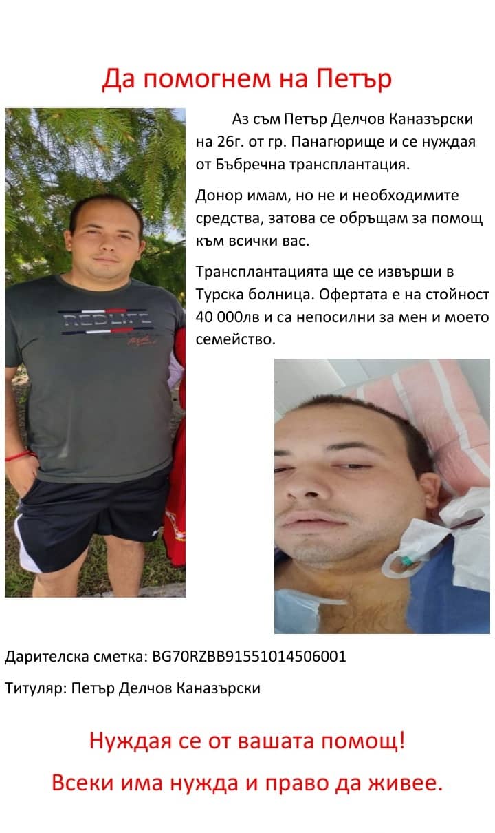 На входа на зрителната зала ще бъде поставена дарителска кутия, а събраната сума ще бъде предадена за лечението на 26 годишния Петър Делчов Каназърски.