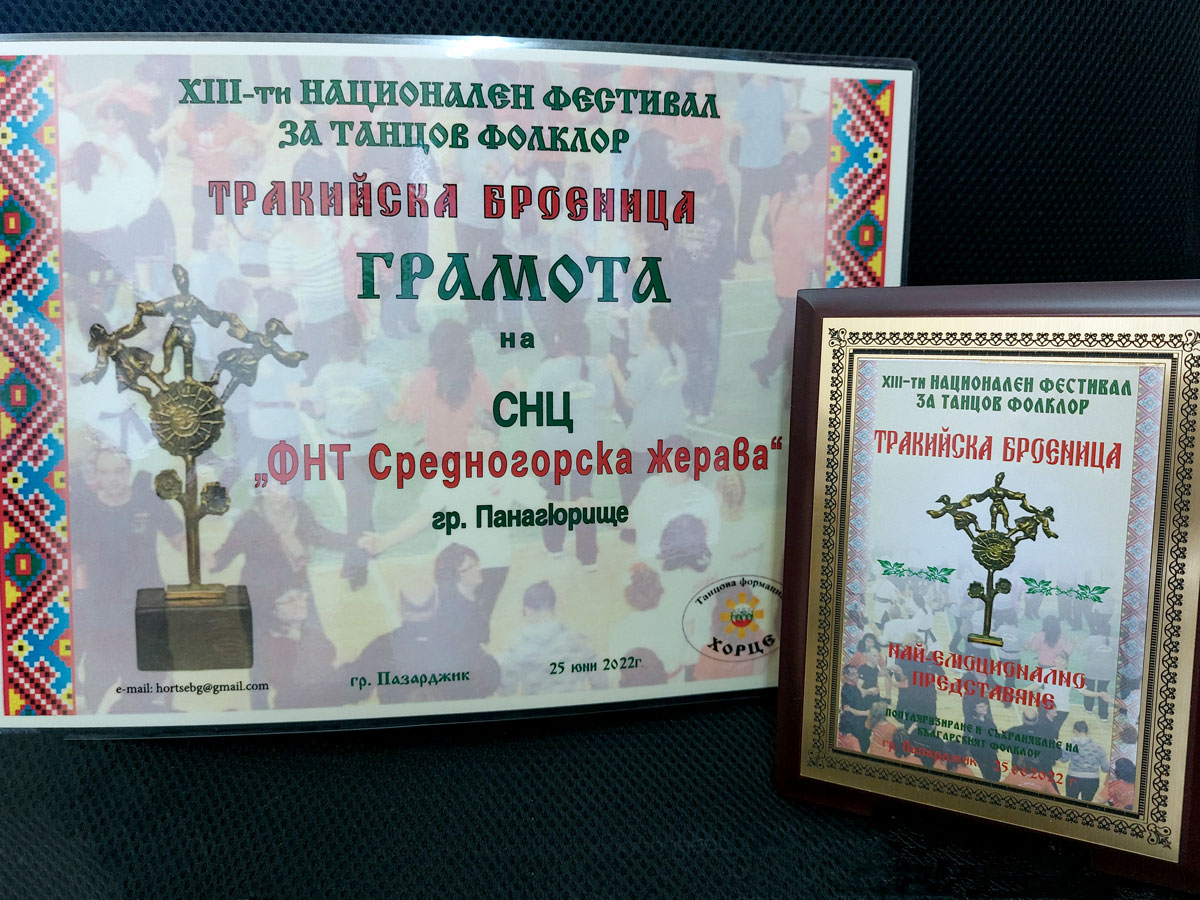 Освен с емоцията, удоволствието и удовлетворението, нашите танцьори се върнаха от фестивала с медал, купа, плакет и диплом.
