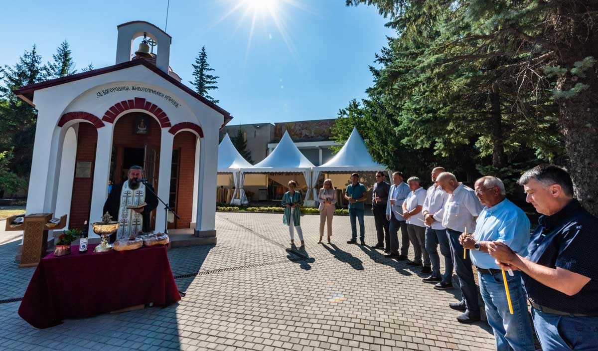 Вчера, празничният ден започна с водосвет за здраве и благополучие, отслужен от свещеноиконом Атанас Манолов – архиерейски наместник на Панагюрската духовна околия, пред фирмения параклис „Света Богородица Живоприемен източник“. „Нека Бог Ви дари здраве, за да продължите да създавате материални и духовни блага с вашите ръце, сърца и разум“, каза след водосвета отец Атанас Манолов.