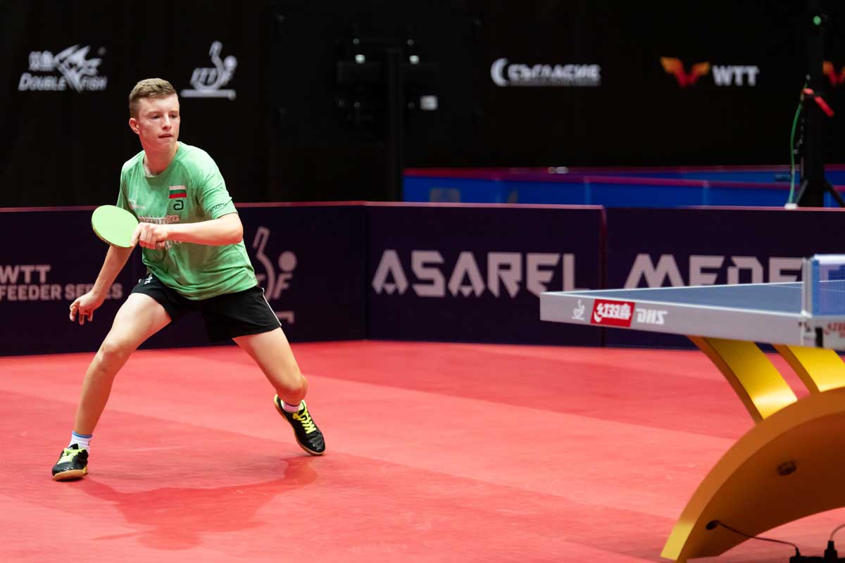 Йоан Величков, който отстрани друг българин в първия квалификационен кръг – Владимир Петков – с 3:0, днес отново се представи достойно срещу Флориан Бурасо от Франция, но не успя да го победи. Френският състезател спечели първите два гейма на 5 точки, но след това 14-годишният ни талант върна интригата в двубоя след 11:9 в своя полза. В четвъртия гейм по-опитният му опонент отново пое контрол над срещата и с 11:2 сложи точка на спора.