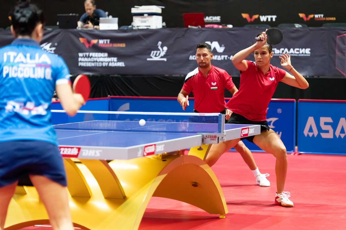 Петьо Кръстев и Мария Йовкова стартираха ударно в основната схема на смесени двойки на WTT Feeder PANAGYURISHTE Presented by Asarel 2022 и преодоляха осминафиналите без да дадат нито един гейм на своите съперници. Първото препятствие пред нашата двойка беше тандемът от Италия, съставен от Джорджия Пиколин и българинът, защитаващ цветовете на „адзурите“ Нягол Стоянов, като в отделните части Кръстев и Йовкова се наложиха с 11:6, 13:11 и 15:13. В четвъртфиналите те ще се изправят срещу китайците Сю Хайдонг и У Янчен, които отстраниха друга двойка с българско участие – Денислав Коджабашев и състезаващата се за Турция Сибел Алтънкая с 11:9, 11:6 и 11:8.