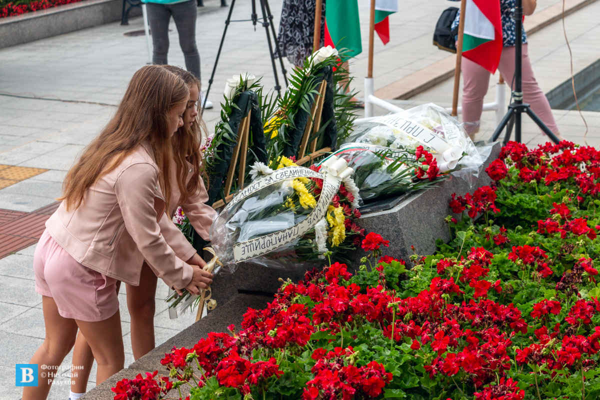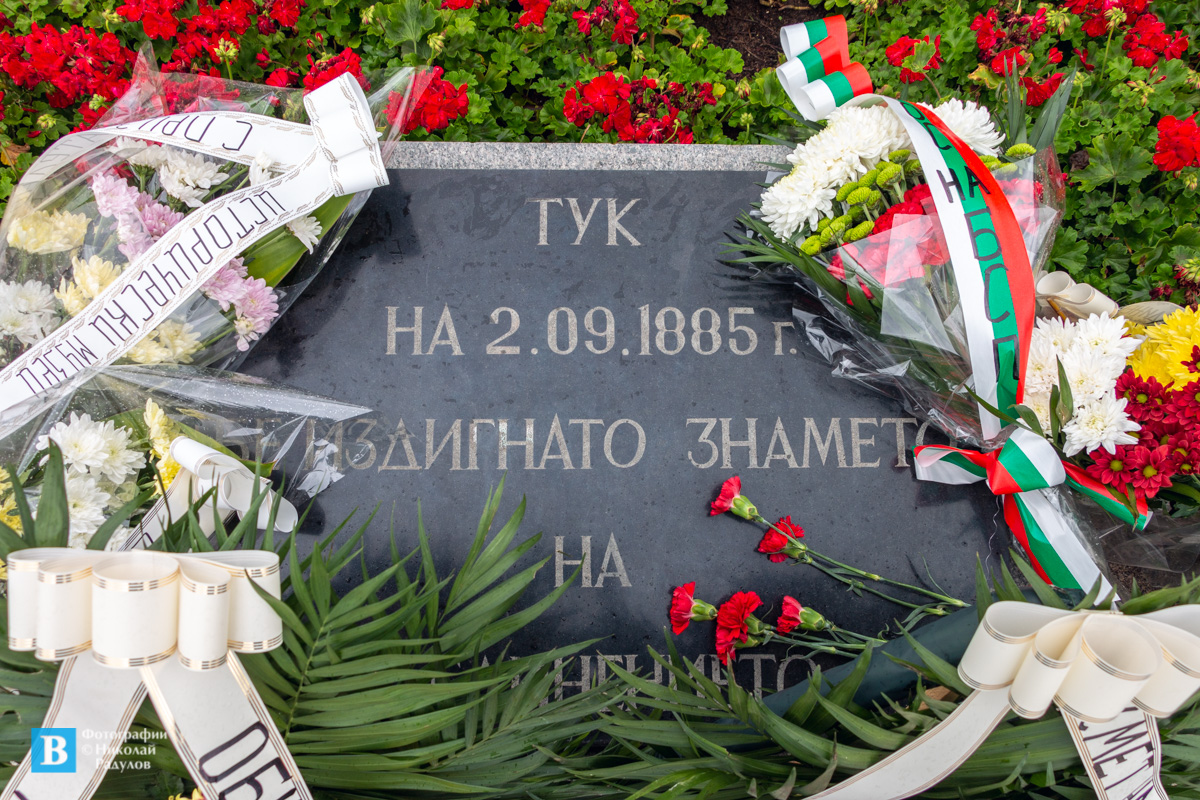 В знак на признателност бяха поднесени венци и цветя пред паметната плоча, обозначаваща мястото на съединистката акция.