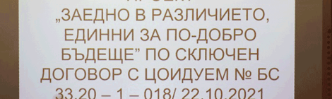 С хепънинг и общински дискусионен форум проектът „Заедно в различието, единни за по-добро бъдеще“ финансиран по договор, сключен с ЦОИДУЕМ № БС 33.20 – 1 – 018/22.10.2021 година с бенефициент […]