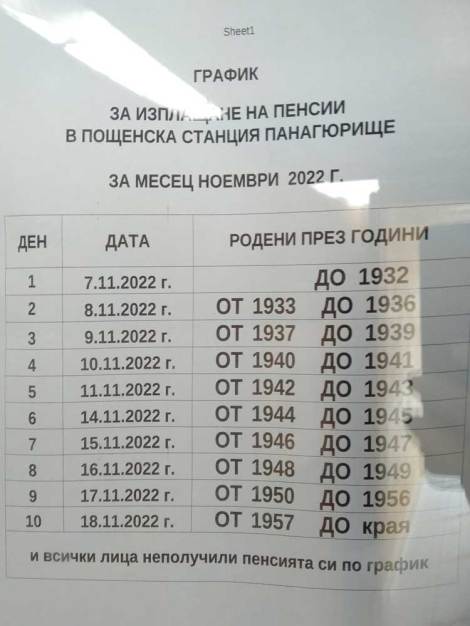Вижте графика за изплащане на пенсиите през ноември