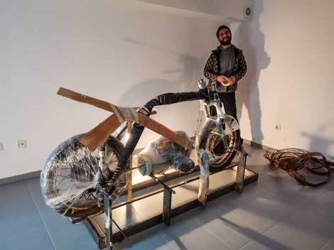 Тази събота, 17 декември, в галерия „Случаен пистолет“ в София бе открита първата самостоятелна изложба на панагюрския дърворезбар Иван Ушев. Като център на експозицията със заглавие „2&200“ може да се определи творба със същото име, представляваща мотоциклет, в който дървото е преобладаващ материал за изграждане на конструкцията.