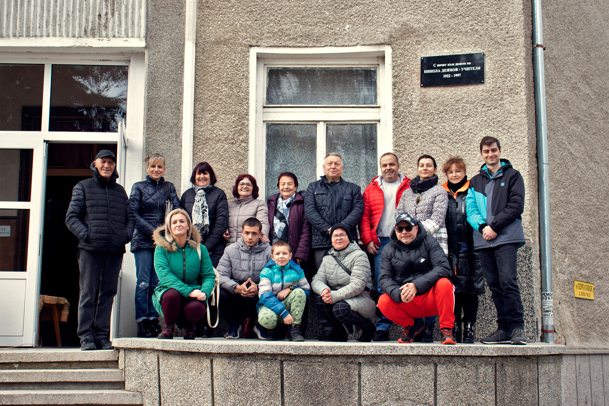 Кметът-Георги-Александров-с-близки-родственици-на-Учителя-Никола-Деянов-пред-читалището-в-с