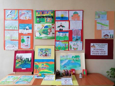 Творбите на децата, участвали в конкурса „Роден край“, са подредени в изложба във фоайето на читалището и ще останат до края на месец януари.