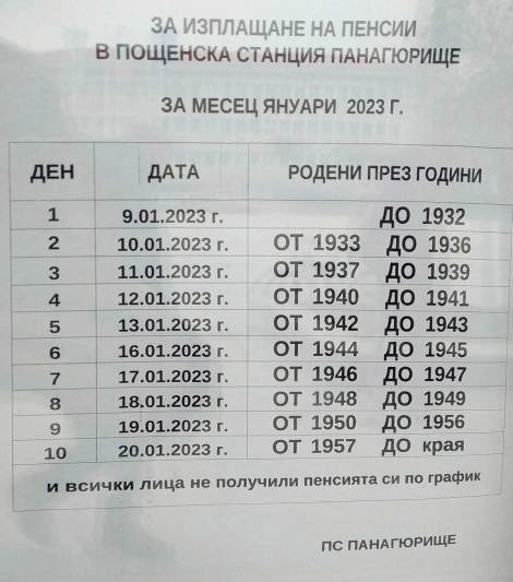График за получаване не пенсиите през януари