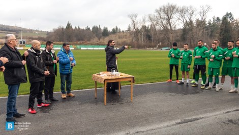Минути след ритуала започна и същинската част на тренировката на панагюрския футболен тим. Това стана на тренировъчното игрище, тъй като основния терен на стадион „Орчо войвода“ все още е в процес на обновление.