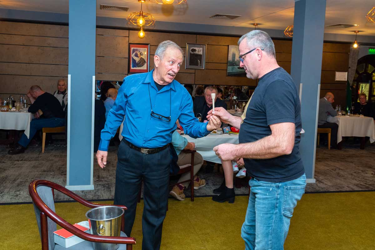 Празникът продължи в ресторант „Каменград“. С поздрав към присъстващите на празничната вечер се обърна председателят на сдружението Стоимен Чуклев. Той със задоволство отчете, че в традиционният конкурс „Медът – течното злато“ са се включили над 300 млади таланти от Панагюрище. Благодари на бизнесмена Нешо Манчев – човекът, който финансово подкрепя местните пчелари при построяването на параклиса „Св. Харалампий“. Пожелание за здраве и пълни кошери с мед отправи Стефан Мирев – пчелар, член на сдружението и народен представител на 45-то, 46-то, 47-то и 48-то Народно събрание.