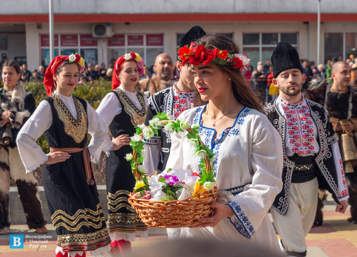 Празникът започна на центъра в селото малко след 11,30 часа, когато вече около площада се бе събрала нетърпелива публика. Колоритното шествие, на всяка една от кукерските групи, преминаваше през централната улица и от там влизаше в оформената на площада сцена. Една от главните атракции в разиграването на ритуала беше Рогачът, който символизира елен с рога. В „потерята“ за гонене на злите духове имаше още поп, булка и младоженец, шафери. Имаше също и орачи, сеячи, мечка с мечета и разбира се, самите кукери. Техните костюми бяха до един различни и всеки по своему атрактивен. Направени от животински кожи, накичени с рога и пискюли, и натоварени с тежки звънци, костюмите тежат и никак не е лесно да бъдат носени, но ентусиазмът на участниците ги караше да изглеждат леки като перца.
