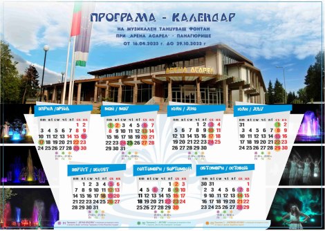 Публикуваме програмата му за съботните и празнични вечери до края на годината. През всяка една от тези вечери може да се насладите на една от трите музикални водно-светлинни феерии. И трите заслужават да се видят.
